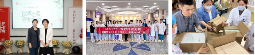 在院内开展护士节庆祝活动的同时,北京高博博仁医院医务部刘莉主任、高博医疗集团工程后勤部赵国伟主任,以及中华儿慈会爱心家园、慕若芊、轻松筹等社会爱心企业、公益组织也为博仁护理工作者送上暖心的节日礼物。大家以不同的方式感谢、祝福着博仁所有的白衣天使,愿他们永远幸福快乐。